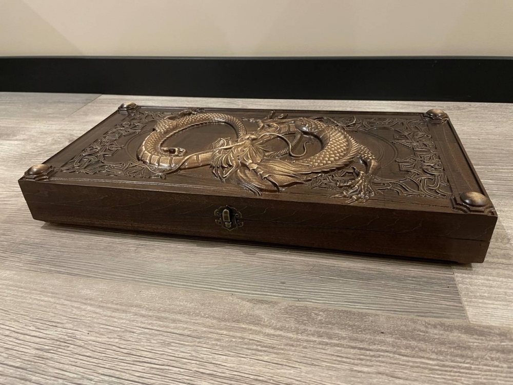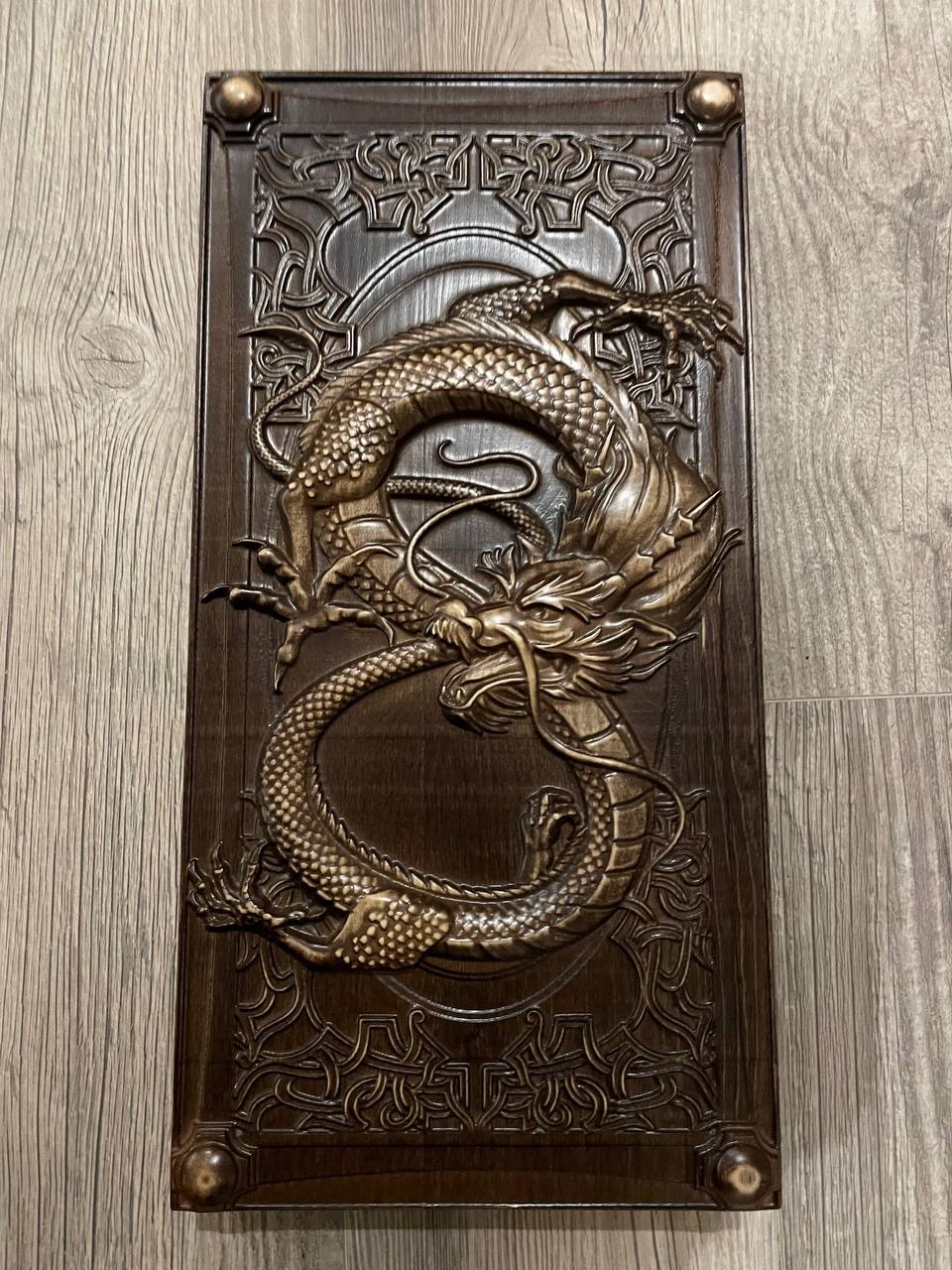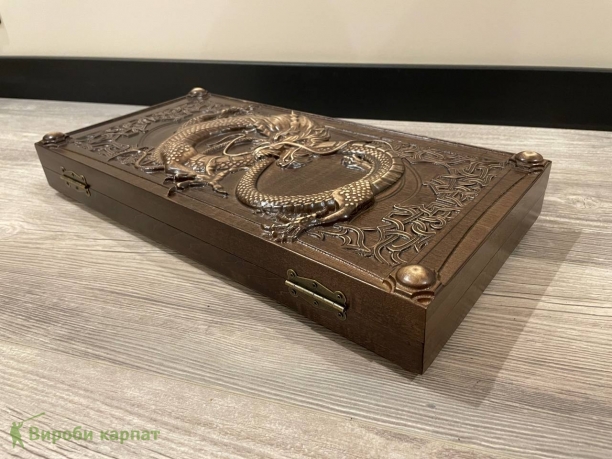 Деревянная нардовая доска с резным драконом это не только игровой набор, но и творческое творение, поражающее своей уникальностью и изяществом. Каждая деталь изготовлена из натурального дерева и украшена искусной резьбой, изображающей мощного дракона. Этот символ силы и мудрости придает игре особый харизматический шарм. Деревянная нардовая доска с резным драконом не только создает отличную атмосферу для игры, но и является отличным элементом декора, который привлекает внимание своей красотой и загадочностью.