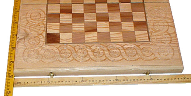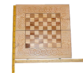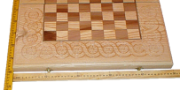 Деревянные шахматы украшенные элементами резьбы по дереву. Ручная работа. Шахматные поля украшены инкрустацией. Деревянные резные фигуры. Удобный большой размер игрового поля (50х50 см), поможет с пользой и комфортом провести время за любимым занятием.