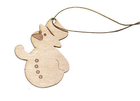 Новогодняя деревянная игрушка Снеговик, меньшего размера.