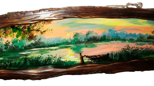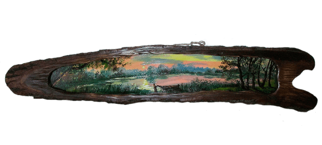 Картина ручной работы, с использованием оригинальной резной рамки из доски с корой. Все детали доработаны в ручную.
