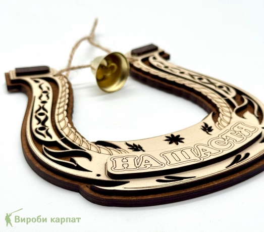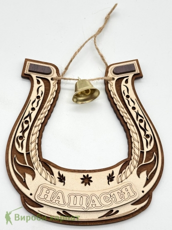 Деревянный оберег-подкова «На счастье» с декоративной лазерной резкой и маленьким колокольчиком. Стильный элемент для дома, символ удачи и благополучия. Многослойное исполнение придаёт изделию объём и выразительность
