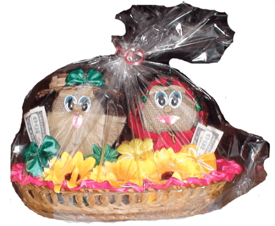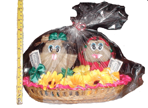 Озорная пара домовиков в корзине. Ни один дом без домового стоять не может. Ведь домовой - это его хозяин, душа и покровитель. Он - хранитель домашнего очага. Домовой чувствует себя членом семьи и трудится на благо ее, помогает по хозяйству. Поддерживает порядок во всем, может и сказать, где находится потерянная вещь. Нужно только попросить его как следует: "Свет-Егорыч, подскажи, где пропавшее лежит!!"