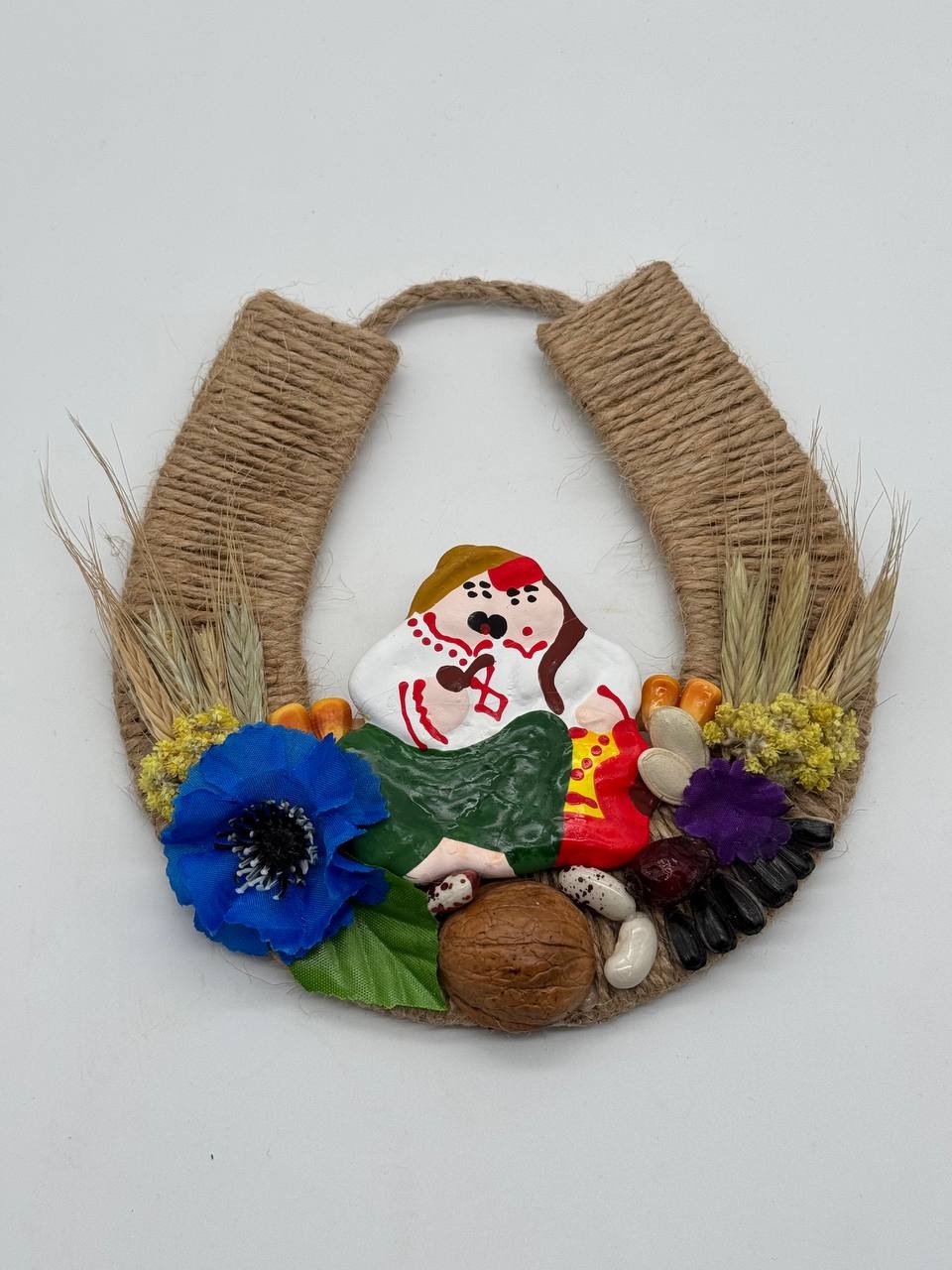Подковка оберег на мешковине, традиционный украинский оберег, который производят в виде декоративной подковы, прикрепленной к полотну из мешковины. Этот стандартный оберег содержит несколько символических элементов, имеющих особое значение.
