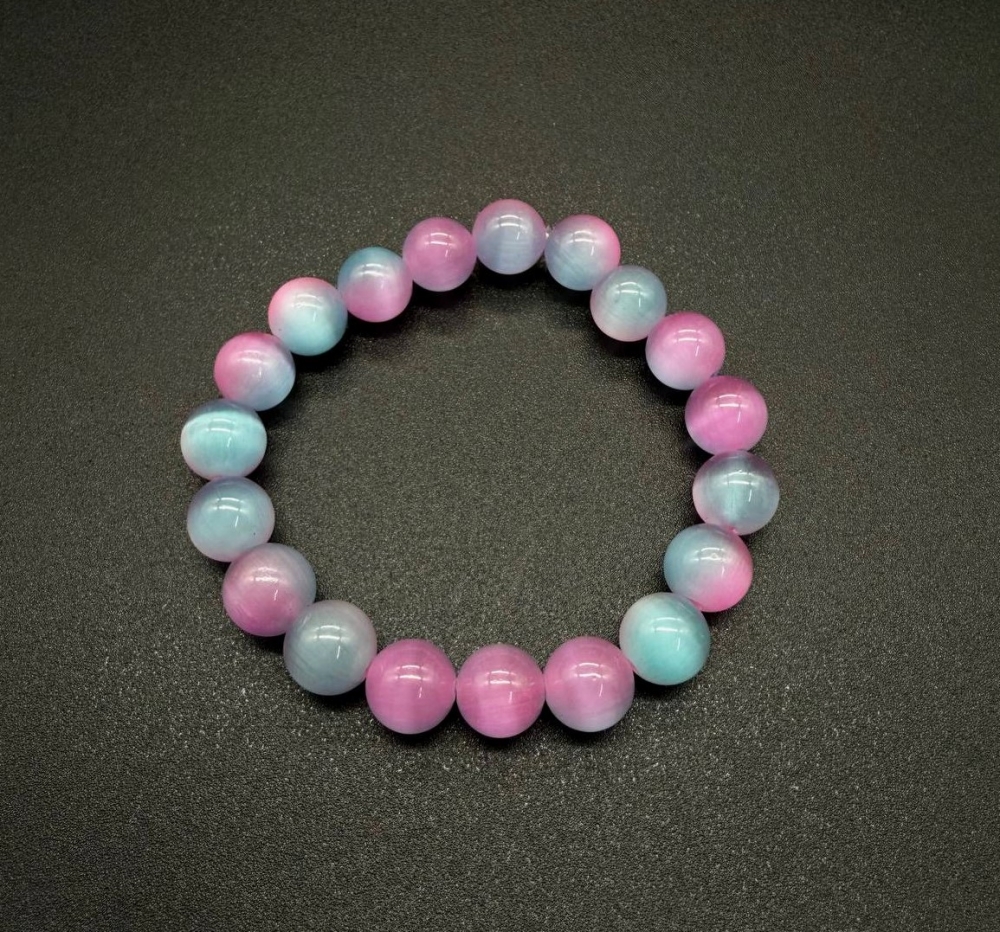 Браслет из камня "Кошачий глаз", бусины 10 мм. Переливающиеся розово-голубые оттенки создают эффект нежности и лёгкости. Камень считается символом интуиции, спокойствия и женской энергии. Идеальный подарок или стильный аксессуар на каждый день