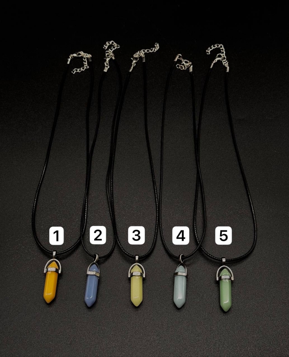 Кулоны-кристаллы на чёрном шнурке, которые светятся в темноте! Дневной свет заряжает их, а ночью они сияют ярким светом.