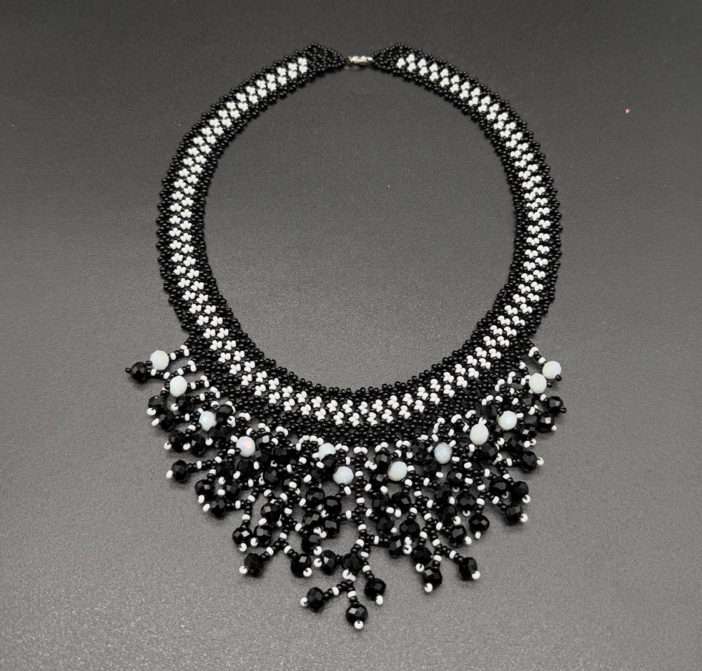 Ожерелье из бисера черно белое