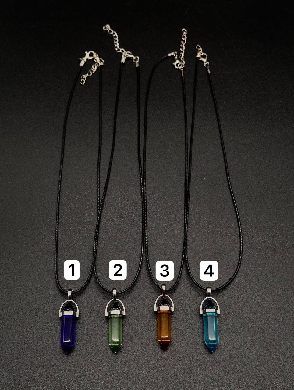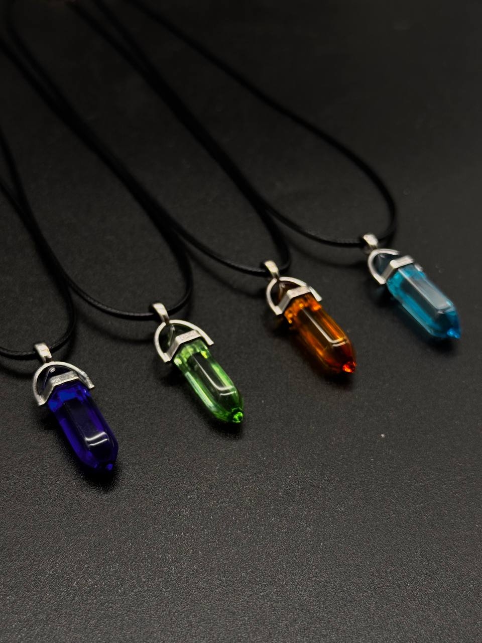 Стеклянные кулоны в форме кристалла на чёрном шнурке — яркий акцент в вашем образе.