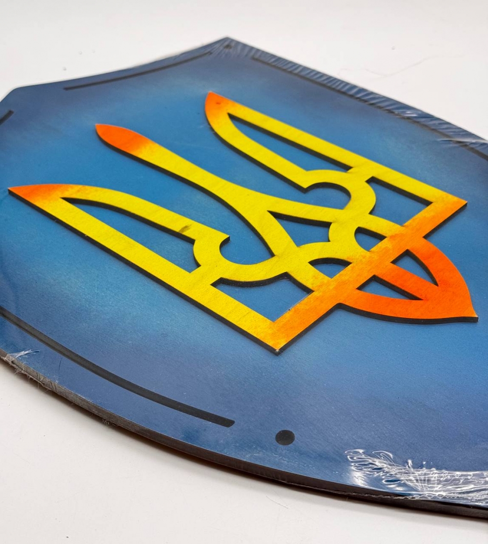 Стильный и патриотичный деревянный щит с изображением украинского трезубца. Изготовлен из высококачественной фанеры и раскрашен вручную в яркие национальные цвета. Идеален как элемент декора, подарок или символ поддержки Украины.