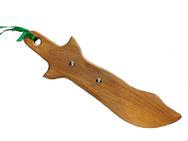 Деревянный игрушечный меч. Игрушка изготовлена из экологически чистого карпатского дерева (бук). Известно, что игрушечные мечи, боевые топоры, сабли и шашки были лучшими игрушками для мальчиков еще в глубокой древности. Взяв в руки деревянный меч, ребенок легко сможет представить себя в образе запорожского казака или былинного витязя. Детские деревянные мечи и сабли совершенно безопасны и могут стать прекрасным подарком для мальчика, в возрасте от трёх лет и старше.
