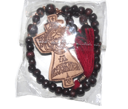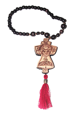 Вервечка с крестиком, изготовлена из карпатского дерева.
