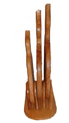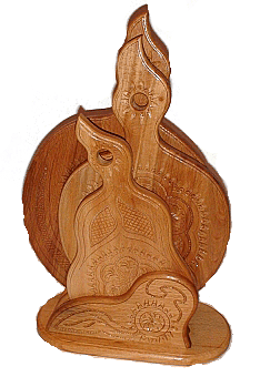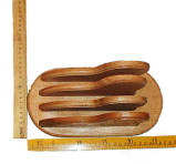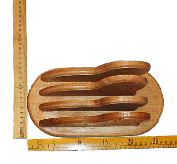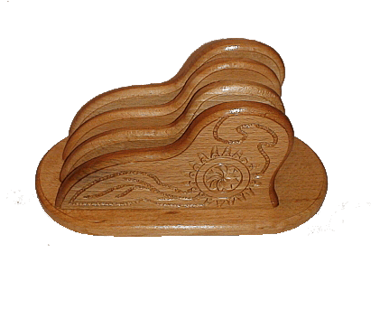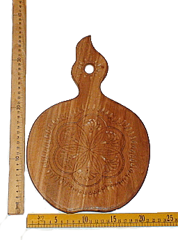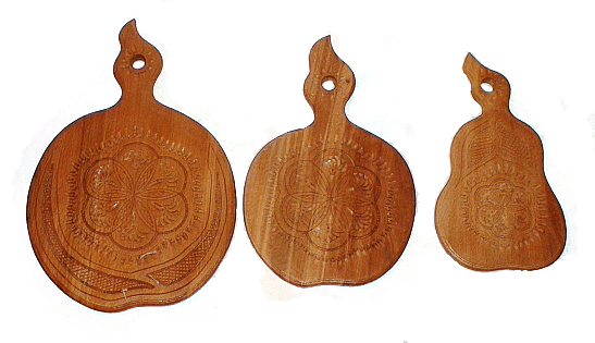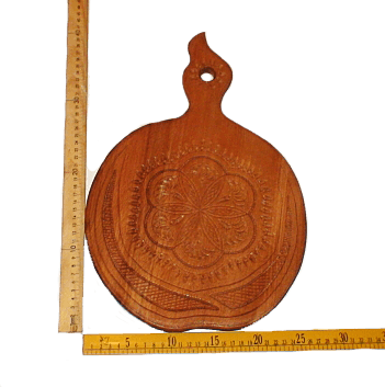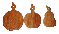 Дерев'яний набір обробних дощок, зроблений з екологічно чистого карпатського бука. Набір складається з підставки і обробних дощок (яблуко велике, яблуко маленьке, груша). На всіх дошках є лицьова сторона, на якій є різьблені орнаменти ручної роботи. Відповідно зворотна сторона дошки має робочу поверхню, на якій можна виробляти оброблення продуктів. Підставка так само прикрашена різьбленими орнаментами. Таким чином, ви отримаєте оригінальний набір обробних дощок, який прикрасить вашу кухню, і зробить її більш зручною і комфортною для приготування і оброблення продуктів.