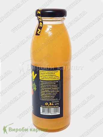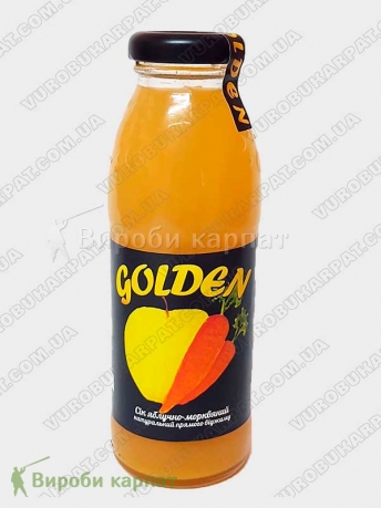 Сік яблучно морквяний натуральний прямого віджиму без добавки води, цукру та харчових добавок, пастеризований, не освітлений. Склад: Натуральний яблучний сік 70%, Натуральний гарбузовий сік 30%