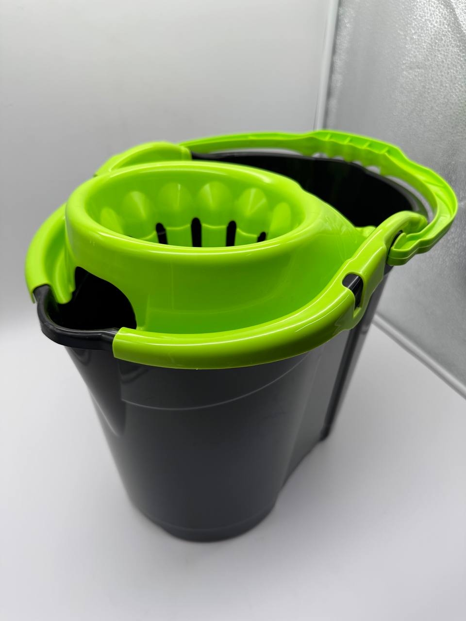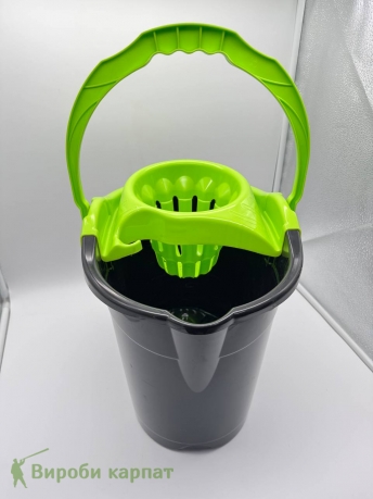 Відро для миття підлоги на 14л, зручний та функціональний елемент для прибирання, який полегшує процес миття підлоги. Виготовляється з міцного пластику, що забезпечує його довговічність та стійкість до пошкоджень. Оснащена віджимом для швабри що дозволяють зменшити кількість зайвої води.