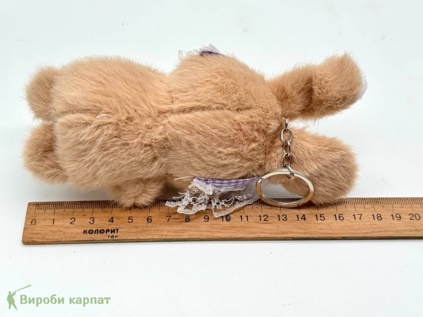 Милий брелок у вигляді м’якого зайчика з квіткою. Виготовлений із приємного на дотик штучного хутра, доповнений ажурною стрічкою на голові. Ідеально підходить як подарунок або прикраса для ключів, рюкзака чи сумки. У наявності різні кольори.