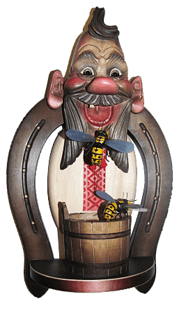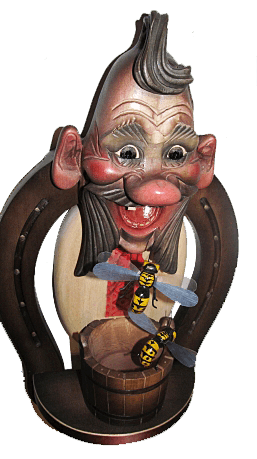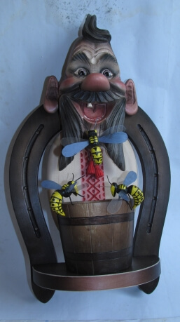 Різьблена дерев'яна скульптура. Ручна робота по дереву вимагає чимало зусиль і великий досвід ремісника. Уміло виготовлені з дерева оригінальні предмети для інтер'єру цінні в наш час. Різьблена дерев'яна скульптура 'Козак і бджоли', ексклюзивний і неповторний подарунок ручної роботи.
