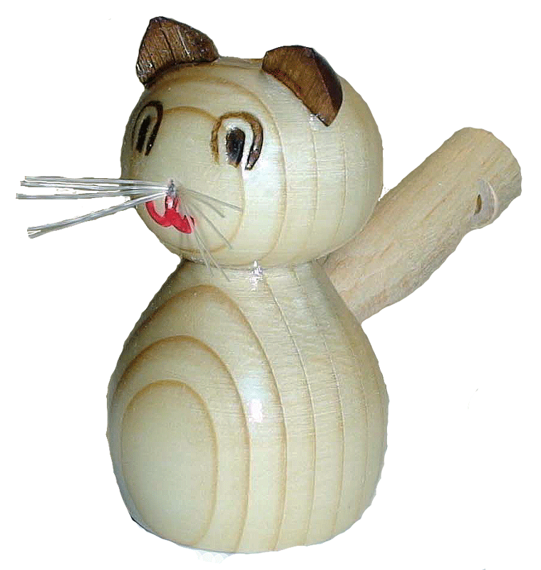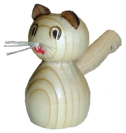 Дерев'яний свистунець "Котик". Свистунець - народний музичний інструмент, який використовується ще з язичницьких часів нашими предками для викликання дощу в спеку і відлякування від нечистої сили. Сьогодні свистунець використовують як іграшку або дитячу забаву. Іграшка вироблена з натурального дерева.