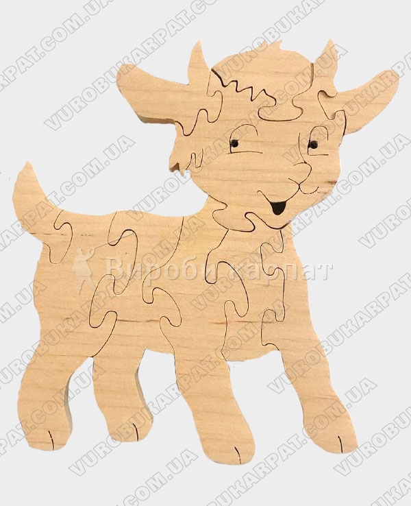 Екологічні пазли виготовлені з карпатського натурального дерева в формі Козеня. Чудовий подарунок вашій дитині для її розвитку.