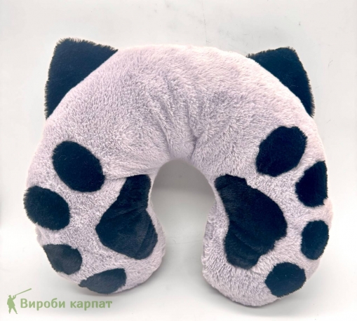 Плюшевая подушка-рогалик для шеи «Кошачьи лапки»