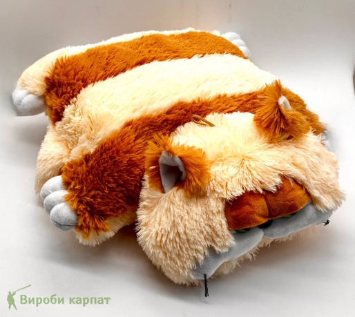 Большая и очень мягкая подушка в виде упитанного кота с выразительной мордочкой. Выполнена из нежного плюша, приятного на ощупь. Подушка легко трансформируется — её можно использовать как игрушку, элемент декора или полноценную подушку для отдыха.